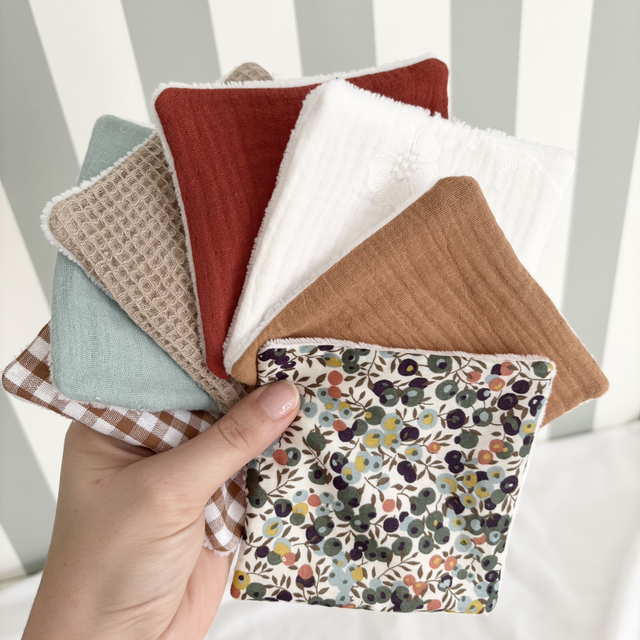 Confectionnées avec soin, ces lingettes réutilisables sont idéales pour le démaquillage, la toilette du visage, ou encore pour les bébés. Leur texture douce respecte toutes les peaux, même les plus sensibles.